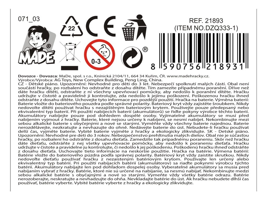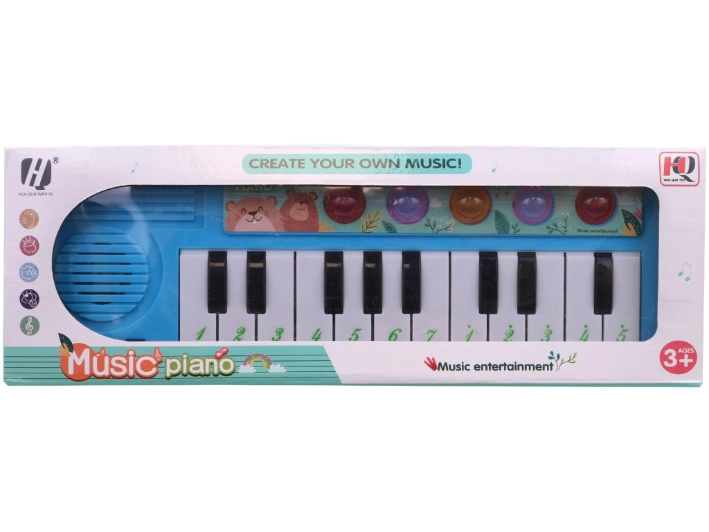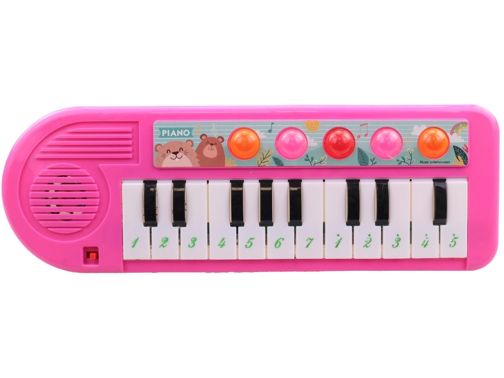 To lekkie i wytrzymałe pianino z wysokiej jakości plastiku wspiera pierwsze kroki muzyczne dzieci. Dzięki praktycznemu opakowaniu typu window box doskonale nadaje się na prezent, a jego design ucieszy małych i dużych miłośników muzyki.