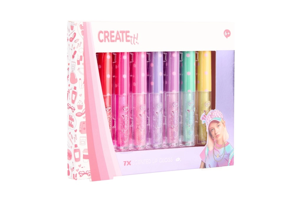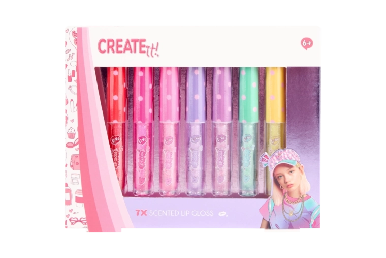 Odkryj zabawny zestaw 7 pachnących błyszczyków do ust CREATE IT!, który nada Twoim ustom intensywny połysk, delikatne drobinki i przyjemny zapach. Każda tubka ma inny odcień i aromat, więc z łatwością wybierzesz kolor na każdy nastrój. Idealny jako prezent lub do dzielenia się z koleżankami.