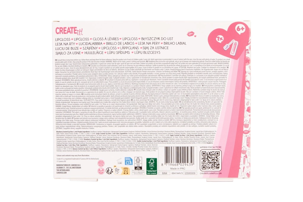 Zestaw CREATE IT! oferuje siedem kolorowych błyszczyków z połyskującym wykończeniem, które pięknie rozświetlają usta i dodają im subtelnego koloru. Lekka konsystencja łatwo się nakłada i sprawdzi się w codziennym makijażu. Każdy błyszczyk pachnie inaczej, dzięki czemu możesz bawić się i być kreatywna przy wyborze.