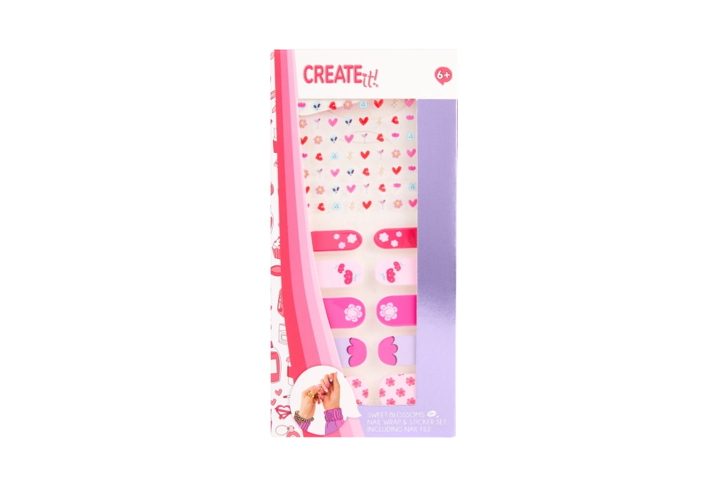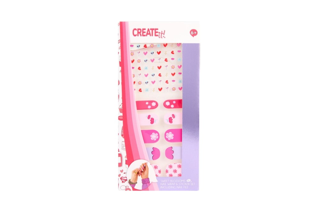 Rozświetl swój nail art z zestawem CREATE IT! – naklejki na paznokcie w kolorowych i zabawnych motywach oraz 4 pilniczki o różnej gradacji dla idealnego wykończenia. Łatwa aplikacja, długa trwałość i niekończące się możliwości łączenia wzorów na imprezy, do szkoły i na co dzień.