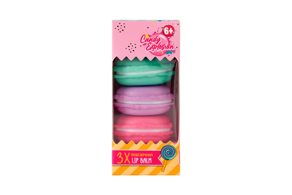 Zestaw balsamów do ust w kształcie makaroników ucieszy miłośników słodkich aromatów i figlarnego designu. Każda makaronika skrywa balsam, który zmiękcza i odżywia usta, nadając im przyjemny blask. Dzięki kompaktowej formie zmieści się do każdej torebki i jest perfekcyjny do szybkiej pielęgnacji ust o każdej porze dnia.