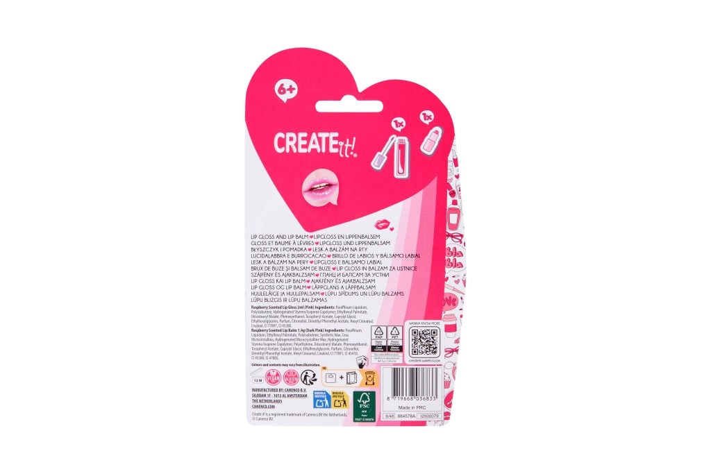 Praktyczny i stylowy zestaw CREATE IT! łączy nawilżający balsam i błyszczyk do ust w jednym sprytnym pudełeczku. Wieczko typu flip-top i wytrzymałe plastikowe etui chronią zawartość, a dzięki mini łańcuszkowi łatwo przypniesz je do kluczy, plecaka lub torby. Doskonały wybór dla dzieci i nastolatków, którzy chcą mieć pielęgnację ust zawsze pod ręką.