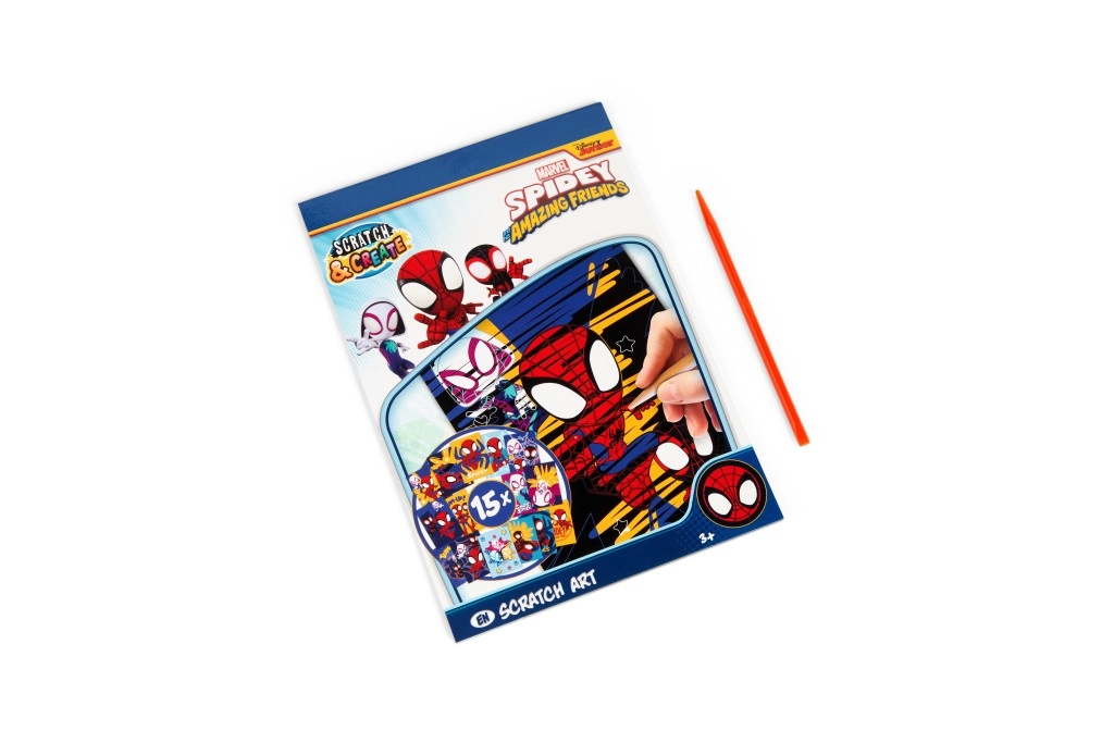 Książka do wydrapywania SPIDEY A5 zapewnia dzieciom łatwy i czysty sposób tworzenia. Wystarczy użyć rysika i zdrapywać czarną warstwę, pod którą kryją się żywe kolory oraz komiksowe motywy ulubionych postaci ze świata SPIDEY.