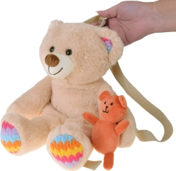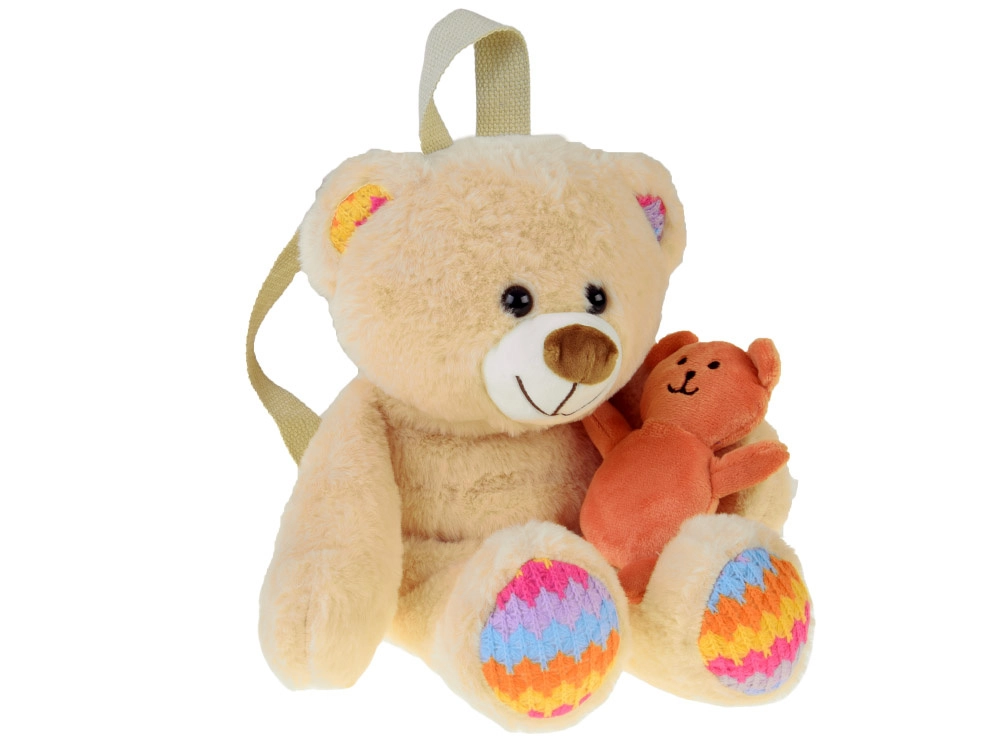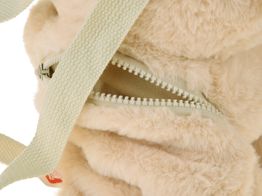 Ten miękki plecak w kształcie beżowego misia łączy zabawkę i praktyczny bagaż w jednym. Kolorowe detale na łapkach i uszach, wyszywany uśmiech oraz przytulna, puszysta powierzchnia pobudzają dziecięcą wyobraźnię i komfort noszenia. Ukryta kieszeń na zamek pomieści drobne skarby, przekąskę lub chusteczki.