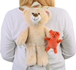 Dzięki regulowanym szelkom plecaczek łatwo dopasujesz do sylwetki dziecka. Lekka konstrukcja i miękki plusz gwarantują wygodę nawet przy dłuższym noszeniu. W zestawie jest uroczy mini miś, który dodaje plecakowi zabawnego, prezentowego charakteru.
