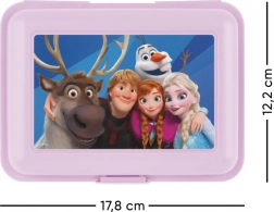 Miłośnicy bajki Kraina Lodu pokochają to pudełko na śniadanie. Dzięki solidnemu plastiku i niezawodnemu zamknięciu na jeden zatrzask przekąski są chronione przed rozsypaniem w tornistrze lub plecaku. Lekkie i łatwe do przenoszenia pudełko sprawdzi się dla dzieci i rodziców, którzy docenią prostą pielęgnację i atrakcyjny design.