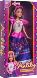 Lalka Lily marki Woopie wprowadza dzieci w atmosferę meksykańskiego folkloru w nowoczesnym wydaniu. Noszony kolorowy strój z kwiecistymi i geometrycznymi wzorami, różowa opaska ze zdobieniem oraz dodatki, takie jak pasek i naszyjnik, podkreślają jej wyjątkowy wygląd. Ruchome kończyny umożliwiają naturalne pozy i zabawne scenki.