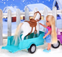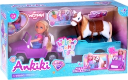 - Lalka Niki, koń z siodłem i uzdą, terenowy samochód, odłączana przyczepa, małe akcesorium (marchewka)