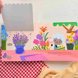 Pachnąca książka Zakupy na targu rolnym wprowadza dzieci w świat kolorów, smaków i zapachów. Na każdej rozkładówce ukryty jest autentyczny zapach owocu lub warzywa, który aktywuje się delikatnym dotykiem i powąchaniem. Dzieci angażują więc węch i dotyk, a zwykłe czytanie staje się zmysłowym odkrywaniem.