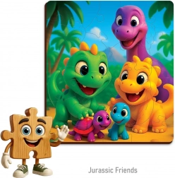 Po ułożeniu puzzle mają wymiary około 17,4 × 19,3 cm – idealny rozmiar na stół lub matę dziecięcą. Świetny prezent dla małych miłośników dinozaurów.