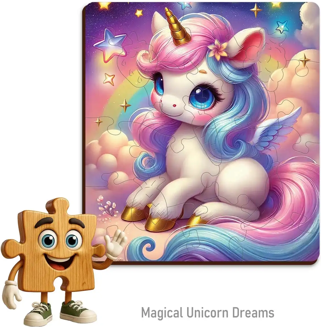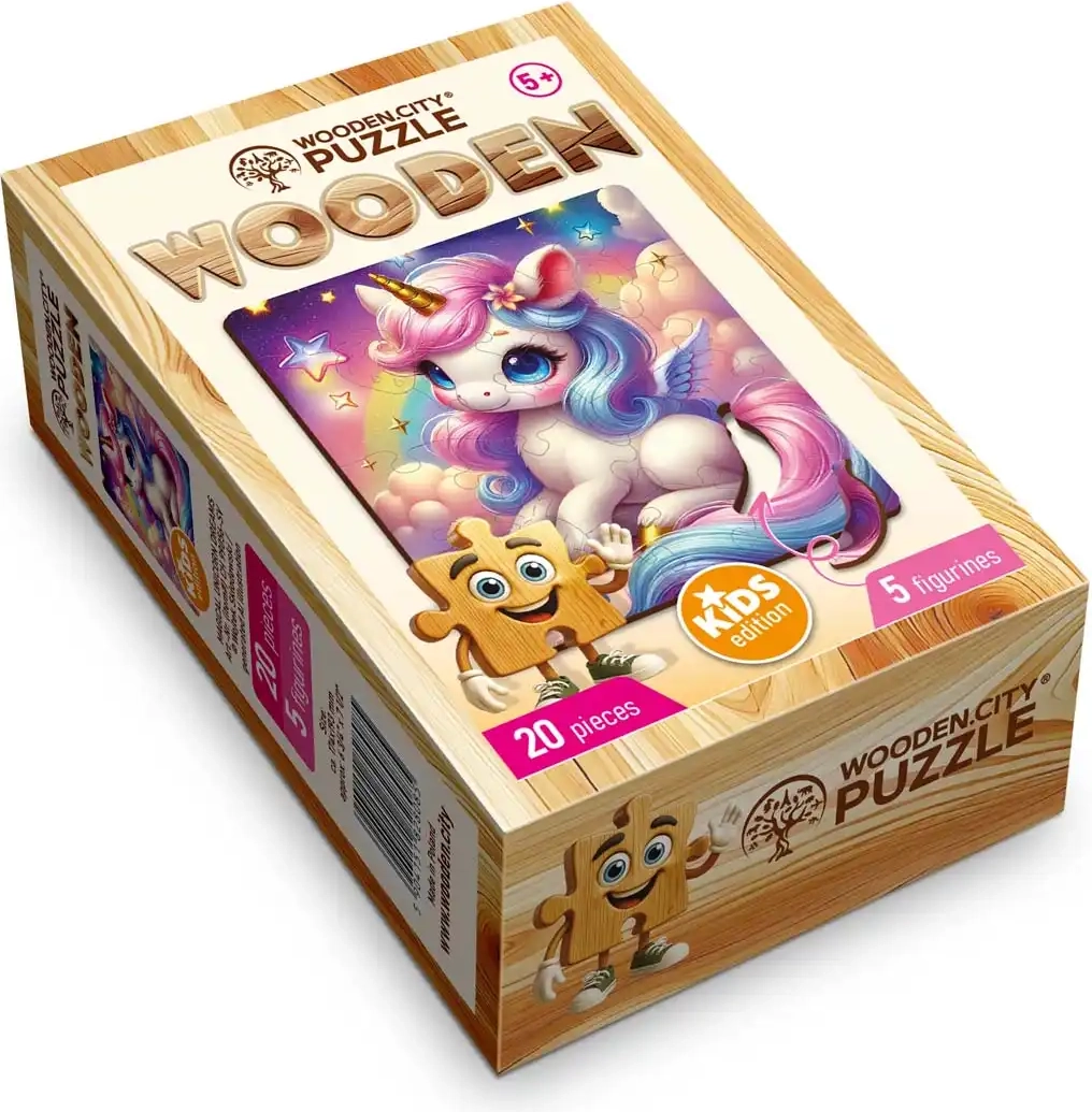 Ten zestaw to świetny prezent dla dzieci, które kochają jednorożce i chcą ćwiczyć układanie z wysokiej jakości drewnianymi puzzlami od WOODEN CITY.