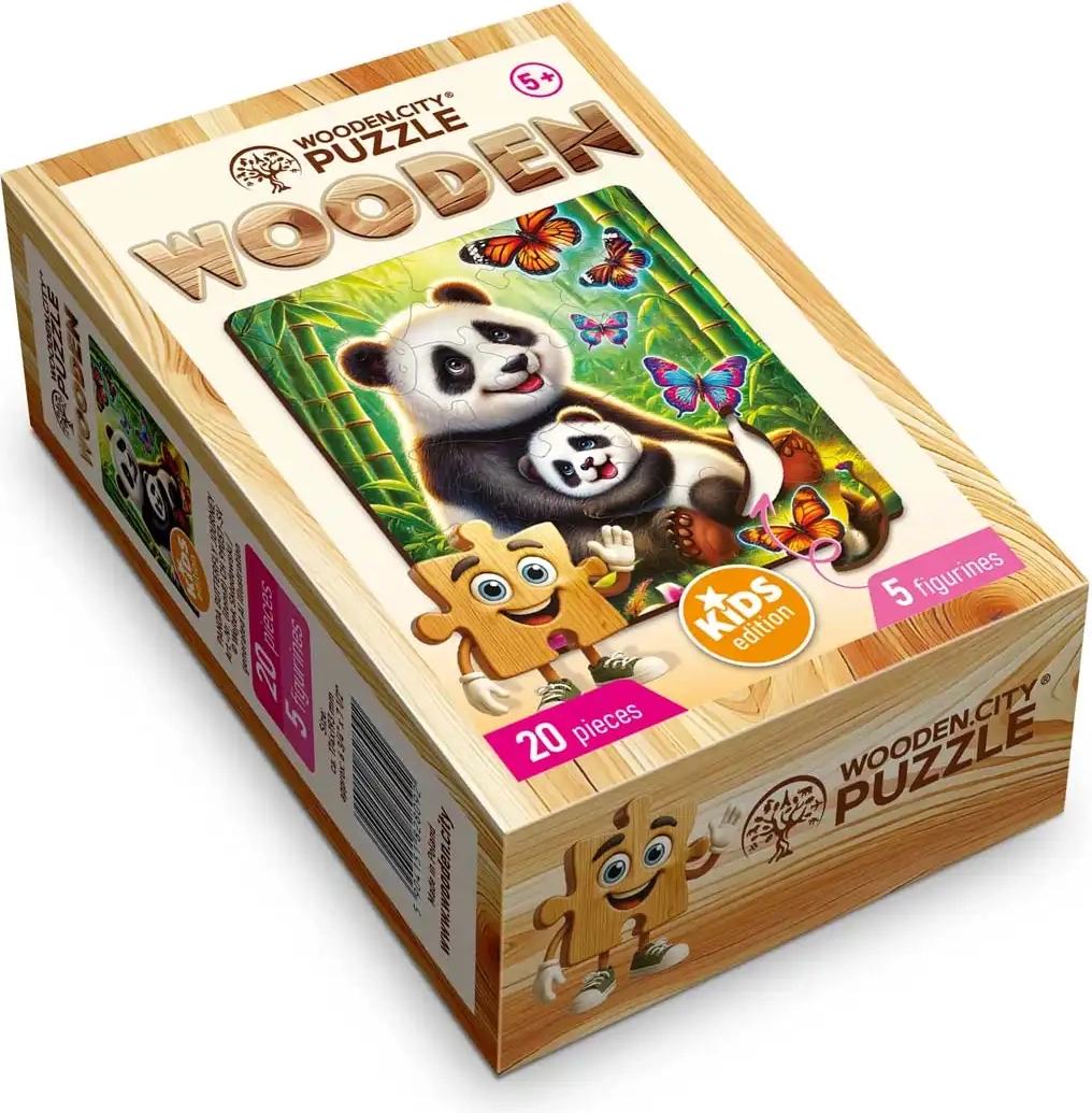 Te drewniane puzzle WOODEN CITY to idealny wybór na pierwsze układanki i jako miły prezent. Dzięki wysokiej jakości wykonania z wytrzymałego drewna oraz gładkim krawędziom świetnie leżą w dłoni, a układanie jest bezpieczne także dla młodszych dzieci. Urokliwy motyw pandy po ułożeniu tworzy atrakcyjną scenę o wymiarach ok. 17,4 × 19,3 cm.