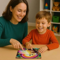 Drewniane puzzle rozwijają małą motorykę, wyobraźnię przestrzenną i cierpliwość. Kompaktowy wymiar ułożonego obrazka pasuje na półkę lub do ramki, więc możesz wspólnie z dziećmi wyeksponować efekt.