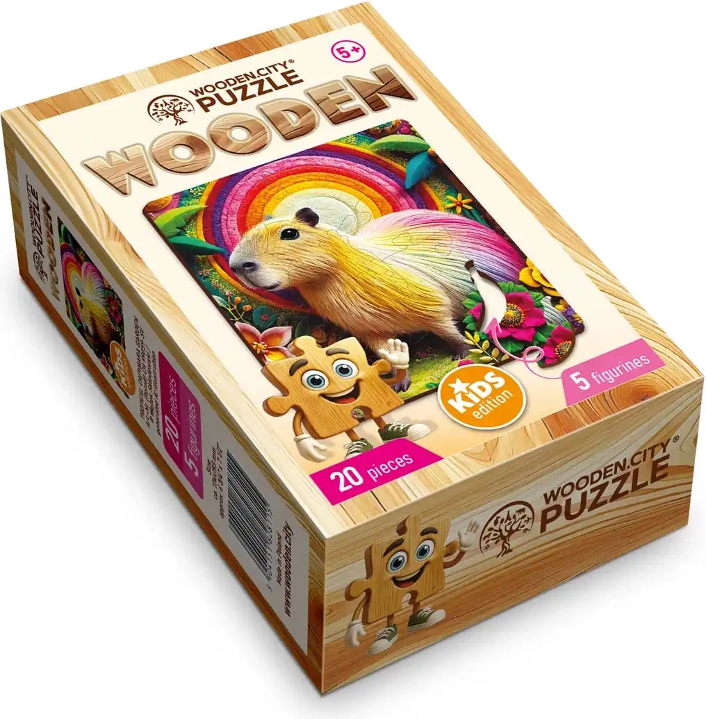Odkryj zabawne i wysokiej jakości drewniane puzzle z motywem kapibary, idealne dla dzieci i początkujących. Zestaw zawiera 20 solidnych elementów, z których 5 ma unikalne kształty, a dzięki precyzyjnej obróbce laserowej elementy mają gładkie krawędzie bez drzazg. Puzzle wspierają koncentrację, cierpliwość i kreatywność, a w komplecie znajduje się także osobna podkładka-wzór ułatwiająca układanie.