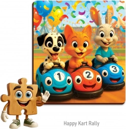 Po ułożeniu puzzle mają około 17,4 × 19,3 cm, dzięki czemu łatwo je przechowywać i eksponować. Idealne jako prezent dla małych miłośników wyścigów i mądrej zabawy.