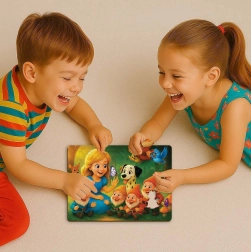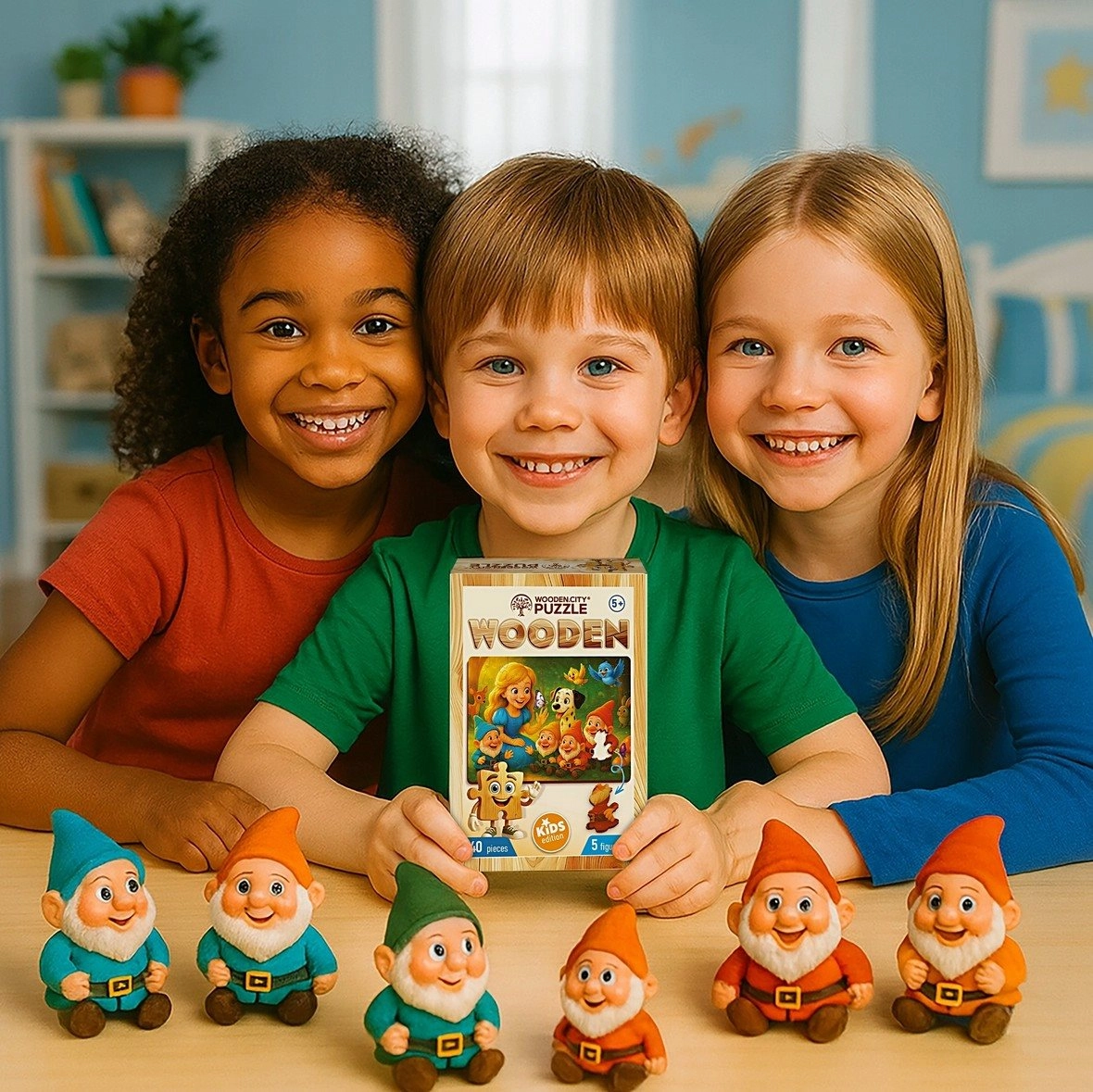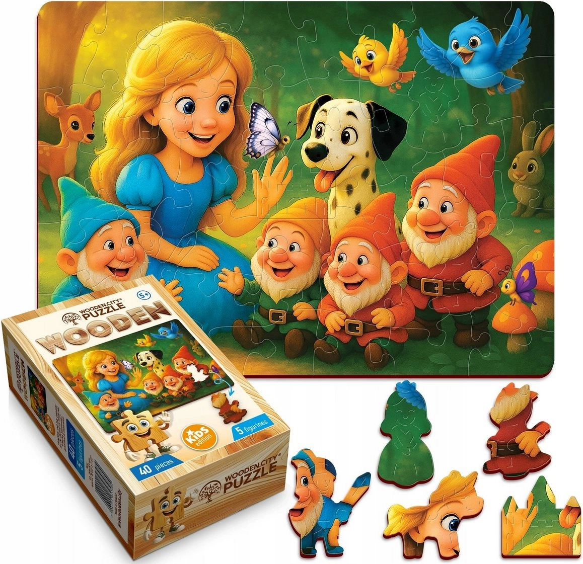 Odkryj bajkowy świat z drewnianymi puzzlami WOODEN CITY z motywem księżniczki i krasnoludków. Wysokiej jakości drewniane elementy z gładkimi krawędziami świetnie leżą w dłoni, a dzięki precyzyjnemu wycięciu laserowemu idealnie do siebie pasują. To idealny prezent dla dzieci, który wspiera cierpliwość, logiczne myślenie oraz motorykę małą.