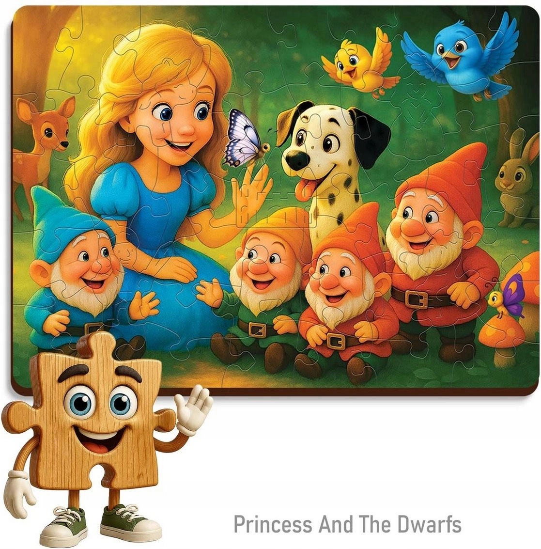 Zabawne drewniane puzzle dla dzieci z motywem księżniczki i krasnoludków oferują 40 starannie wyciętych elementów, w tym 5 unikalnie ukształtowanych. Dzięki gładkim krawędziom i precyzyjnej obróbce laserowej układanie jest bezpieczne i przyjemne. Puzzle rozwijają koncentrację, cierpliwość i kreatywność, a w zestawie znajduje się również oddzielna plansza wzorcowa ułatwiająca układanie.