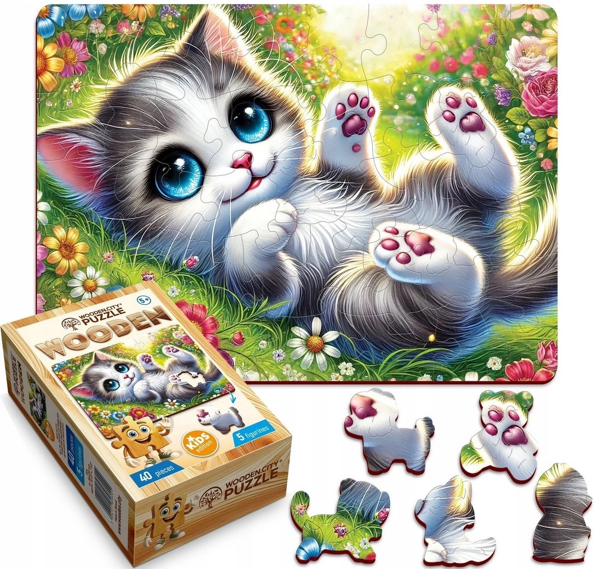 Odkryj zabawne i trwałe drewniane puzzle z motywem kotka, które zachwycą dzieci i rodziców. Zawierają 40 solidnych drewnianych elementów, 5 unikalnie ukształtowanych elementów figuratywnych oraz gładkie krawędzie bez drzazg dzięki precyzyjnej obróbce laserowej. Puzzle wspierają koncentrację, cierpliwość i kreatywność, a w zestawie znajduje się oddzielna podkładka z wzorem ułatwiająca układanie.