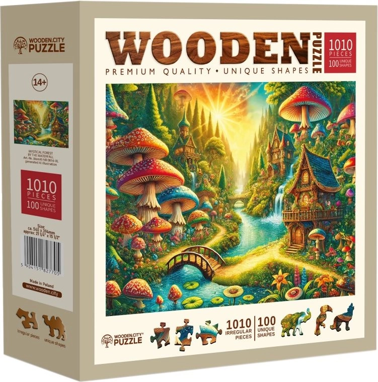 Odkryj magię układania z premiumowymi drewnianymi puzzlami WOODEN CITY Mistyczny las przy wodospadzie z 1010 elementami. Czekają na Ciebie unikalnie wycięte elementy, gładkie, bez drzazg dzięki precyzyjnemu cięciu laserowemu oraz ekologiczne opakowanie bez plastiku. W zestawie znajduje się także plansza/podkład do wygodnego układania, a gotowe dzieło ma wymiary ok. 54 × 39,4 cm – to świetny prezent na każdą okazję.