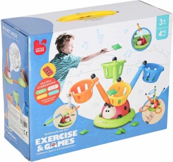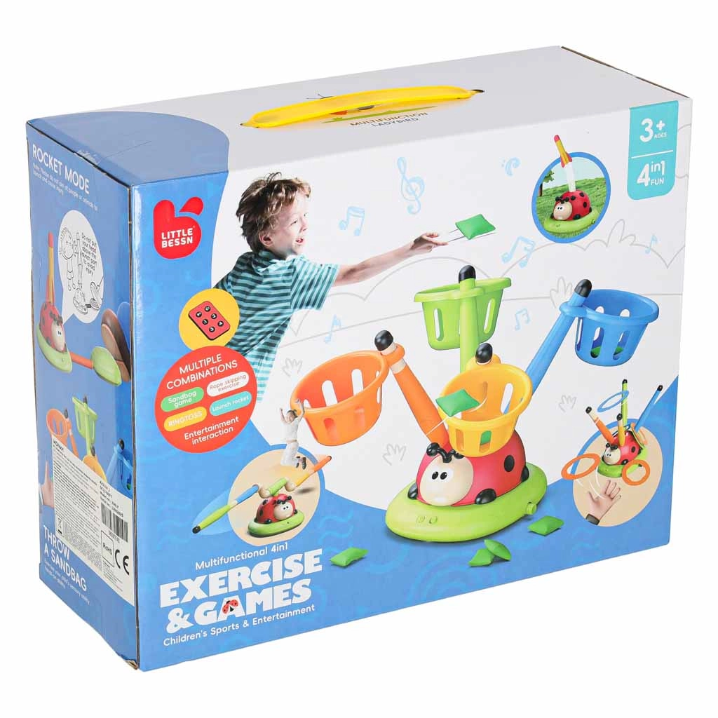 - 4 aktywności w 1 zestawie: skakanie przez przeszkodę, celne rzuty do koszyczków i na kółka, dynamiczne wystrzeliwanie rakiet.