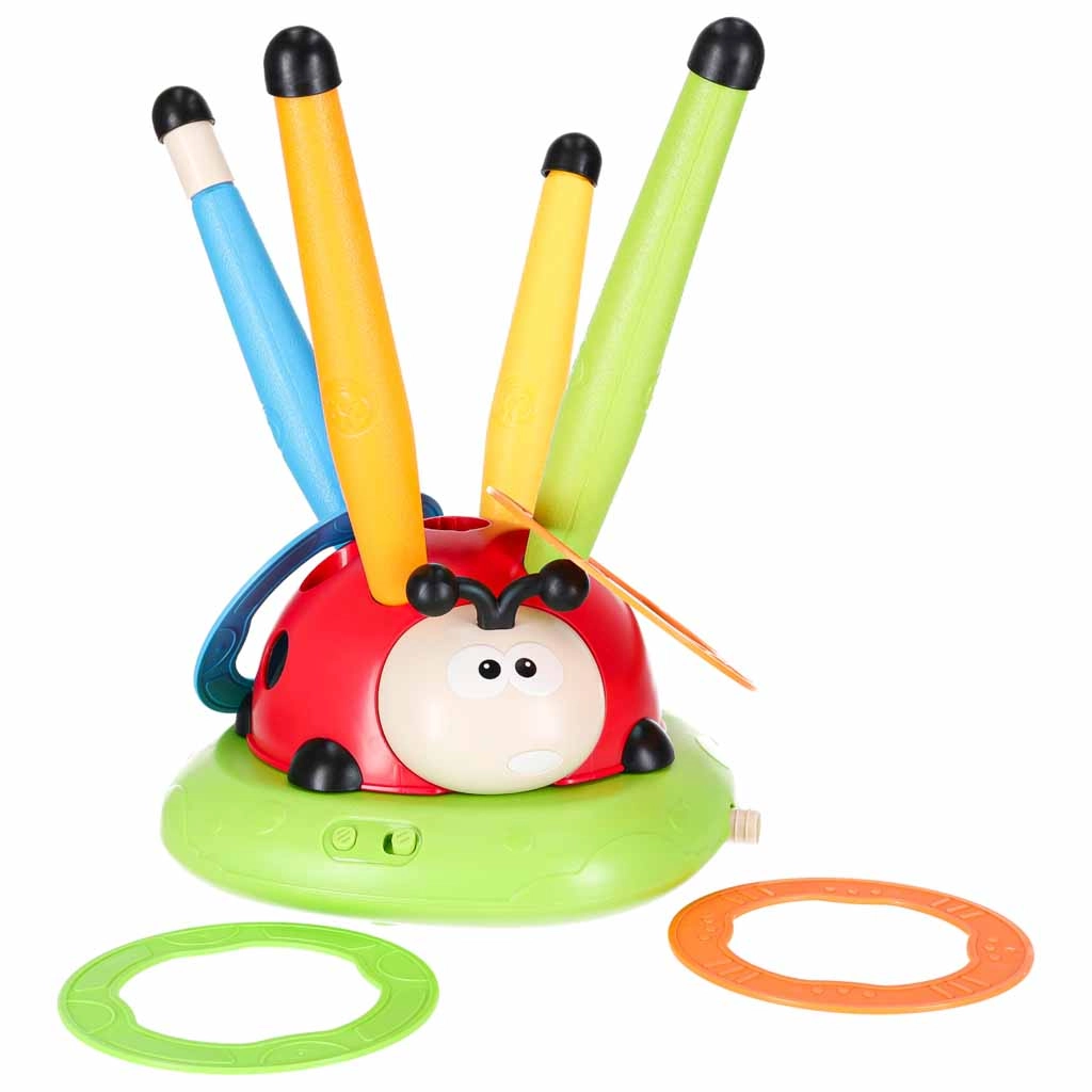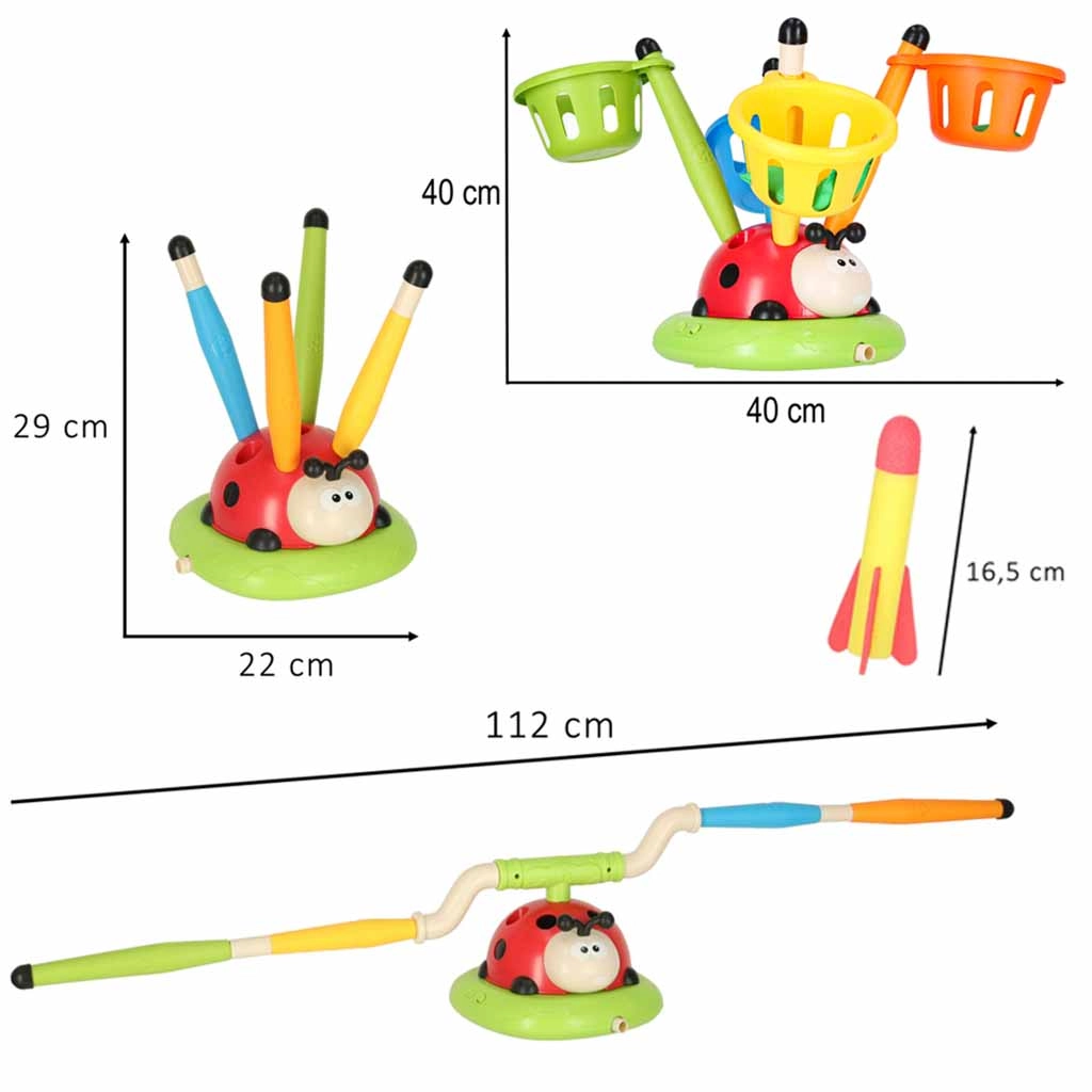 Gra, która nie pozwala siedzieć: obrotowa przeszkoda do przeskakiwania sprawdza spostrzegawczość, powietrzna wyrzutnia posyła rakiety w górę, a rzut do celu dodaje odrobinę sportowej rywalizacji. Interaktywna biedronka ze światłami i dźwiękami motywuje do ruchu i zmienia każdą rundę w nowe wyzwanie.