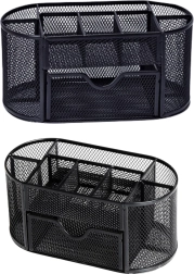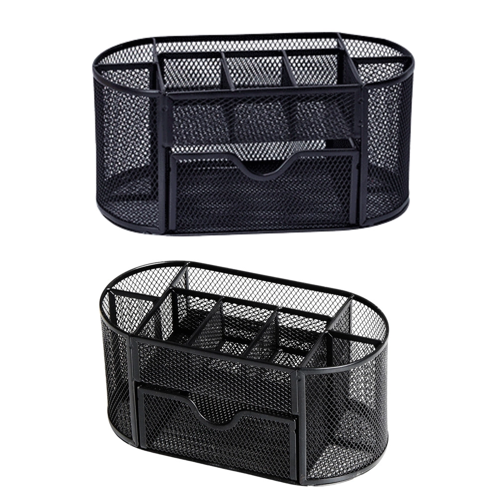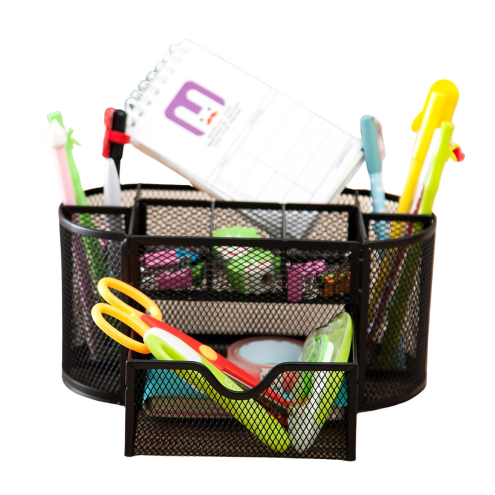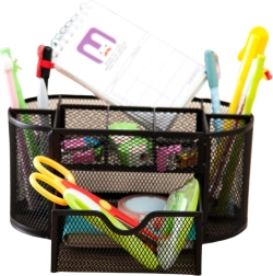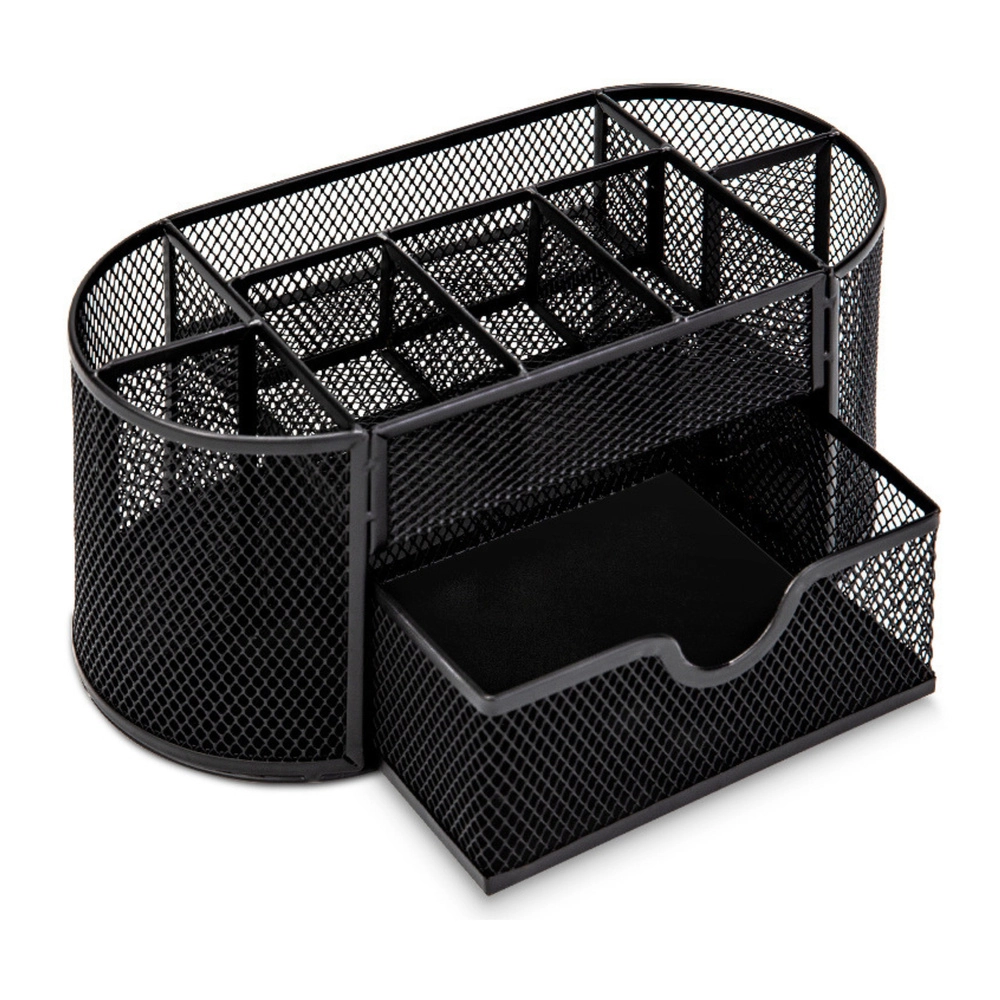 Zachowaj porządek na biurku dzięki kompaktowemu organizerowi o wymiarach 21 × 10,5 × 11 cm. Lekki lakierowany metal z drobnooczkową siatką zapewnia świetny wgląd w zawartość, umożliwia cyrkulację powietrza i doskonale komponuje się z każdym stylem biurowym. Idealny do biura, gabinetu oraz pokoju studenta.