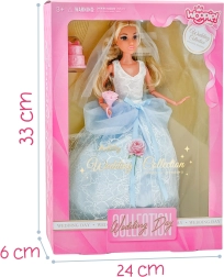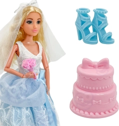 Odkryj świat fantazji z lalką ślubną Lily, która jest gotowa na swój wielki dzień. Dzięki dopracowanej sukni ślubnej z niebieskimi akcentami, delikatnemu welonowi i blond włosom zachwyca od pierwszego wejrzenia. W zestawie znajduje się również mini tort weselny oraz bukiet w kształcie serca – wszystko do tworzenia doskonałych scen ślubnych.