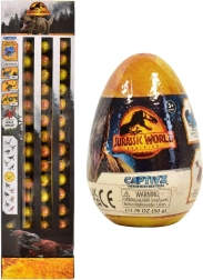 Odkryj niespodziankę ukrytą w tajemniczym jajku ze śluzem z kolekcji JURASSIC WORLD. W środku znajdziesz składną figurkę dinozaura ukrytą w śluzie, przewodnik kolekcjonerski oraz żeton bitewny. Seria oferuje aż 15 różnych gatunków, w tym rzadkie metaliczne figurki. Idealny prezent dla małych paleontologów i kolekcjonerów. Świetna niespodzianka, edycja kolekcjonerska i dinozaur do samodzielnego złożenia.