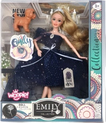 Odkryj magię mody i fantazji z lalką Emi od WOOPIE. Piękna lalka z koroną i długimi blond włosami ubrana jest w błyszczącą suknię wieczorową z kokardą i tiulowym dołem. W zestawie znajdziesz także uroczego pieska – wiernego towarzysza codziennej zabawy. Dzięki dbałości o detale i nowoczesnemu wzornictwu zabawa jest wciągająca i realistyczna.