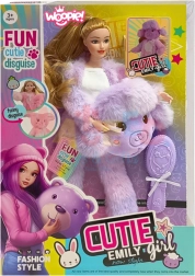 Odkryj lalkę Emi, która łączy modę, wygodę i wyobraźnię. Miękki, puchaty kostium w delikatnych fioletowych odcieniach przypomina urocze zwierzątko i zachęca do przytulania oraz scenek przed snem. Dzięki wysokiej jakości wykonania i dbałości o detale lalka wygląda realistycznie i posłuży na długo.