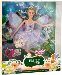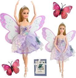 Odkryj świat fantazji z lalką wróżka Emi, która zachwyca lśniącymi motylim skrzydłami, pastelowofioletową sukienką i ruchomymi kończynami. Elegancka koronka, stylowe buciki oraz wysokiej jakości wykonanie z bezpiecznych materiałów zamienią każdą zabawę w magiczną opowieść – doskonały pomysł na prezent.