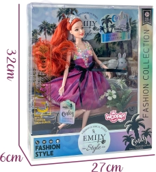Lalka Emi wprowadza dzieci w świat mody i fantazji. Ubrana jest w uroczą różową suknię z połyskującym żywotem i czarną wstążką w pasie, na głowie nosi srebrną koronę, a na stopach eleganckie buciki. Długie, gęste włosy można czesać i układać w różne fryzury, dzięki czemu każda zabawa jest inna i pełna radości.