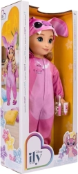 Ta stylowa lalka z długimi blond włosami i niebieskimi oczami jest gotowa na piżamowe przygody. Różowy zwierzęcy onesie „Inspired by Angel” z kapturem, uszkami i nadrukiem jest miękki w dotyku, przyjemny do zabawy i świetnie wygląda na zdjęciach. Dzięki miękkiemu tułowiowi idealnie nadaje się do przytulania, a twarde ręce, nogi i głowa zapewniają stabilność podczas pozowania.