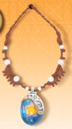 Naszyjnik inspirowany filmem Disney VAJANA 2 dostarcza dzieciom porcji przygody i codziennej radości z zabawy. Wisiorek w kształcie zdobionej niebieskiej muszli po otwarciu rozbłyśnie i odsłoni magiczną Gwiazdę morza, która doda każdemu przebraniu imponującego efektu.