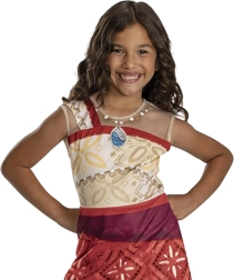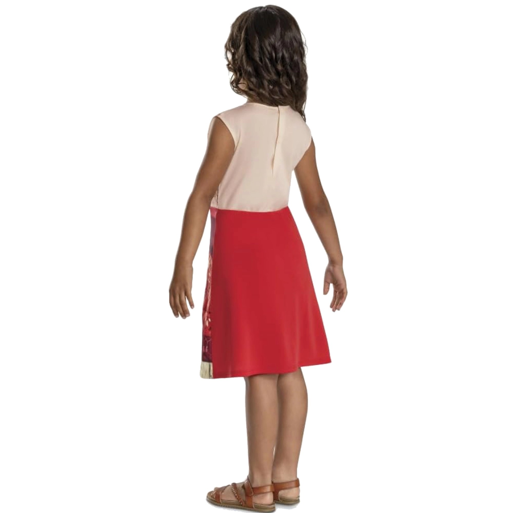 Ten licencjonowany kostium Disguise inspirowany filmem Disneya pozwoli dzieciom natychmiast wcielić się w odważną Vaianę. Sukienka ma atrakcyjne czerwono‑beżowe wykończenie z nadrukiem plemiennych motywów, imitacją skośnego pasa i frędzlowym brzegiem. Zintegrowany nadruk naszyjnika dopełnia kompletny wygląd bez potrzeby dodatkowych akcesoriów.