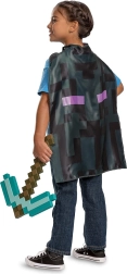 Wejdź do świata MINECRAFT z autentycznym zestawem, który ucieszy każdego entuzjastę. Diamentowy kilof wiernie przypomina przedmiot z gry, a dzięki wygodnemu, ergonomicznemu uchwytowi dobrze leży w dłoni dziecka. Czarna peleryna z motywem ENDERMANA nadaje kostiumowi ikoniczny wygląd.