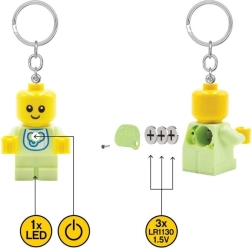 Brelok LEGO w kształcie niemowlęcia ucieszy małych i dużych fanów. Kompaktowe ciało minifigurki jest przymocowane do solidnego metalowego kółka i łańcuszka, więc niezawodnie utrzyma klucze, a jednocześnie posłuży jako praktyczna latarka LED w codziennych sytuacjach.