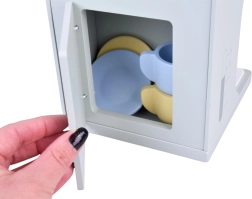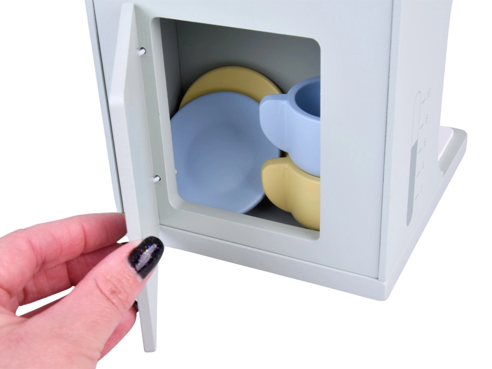 Ten elegancki drewniany ekspres dla dzieci w nowoczesnych pastelowych kolorach oferuje wszystko do zabawy w baristę. Dzięki interaktywnym elementom, takim jak pokrętła, dźwignia portafiltra, wskaźnik ciśnienia, przyciski czy „spieniacz”, zabawa wydaje się naturalna i realistyczna. Gładkie krawędzie oraz nietoksyczne farby zapewniają codzienne, bezpieczne użytkowanie.