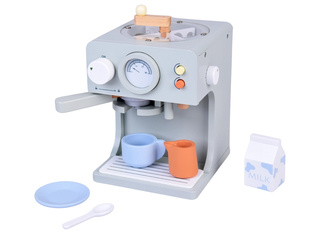 Drewniany ekspres do kawy dla dzieci to stylowa i bezpieczna zabawka, która zamieni dziecięcy pokój w małą kawiarnię. Oferuje realistyczne elementy sterujące (dźwignia/portafilter, pokrętła, wskaźnik, przyciski), bogate akcesoria baristy i wspiera rozwój wyobraźni, małej motoryki oraz zabawę w odgrywanie ról.