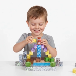 Różnorodne kolory i faktury inspirują do tworzenia oryginalnych scen, wież i konstrukcji 3D. Idealne do rozwijania myślenia przestrzennego i wyobraźni.