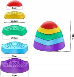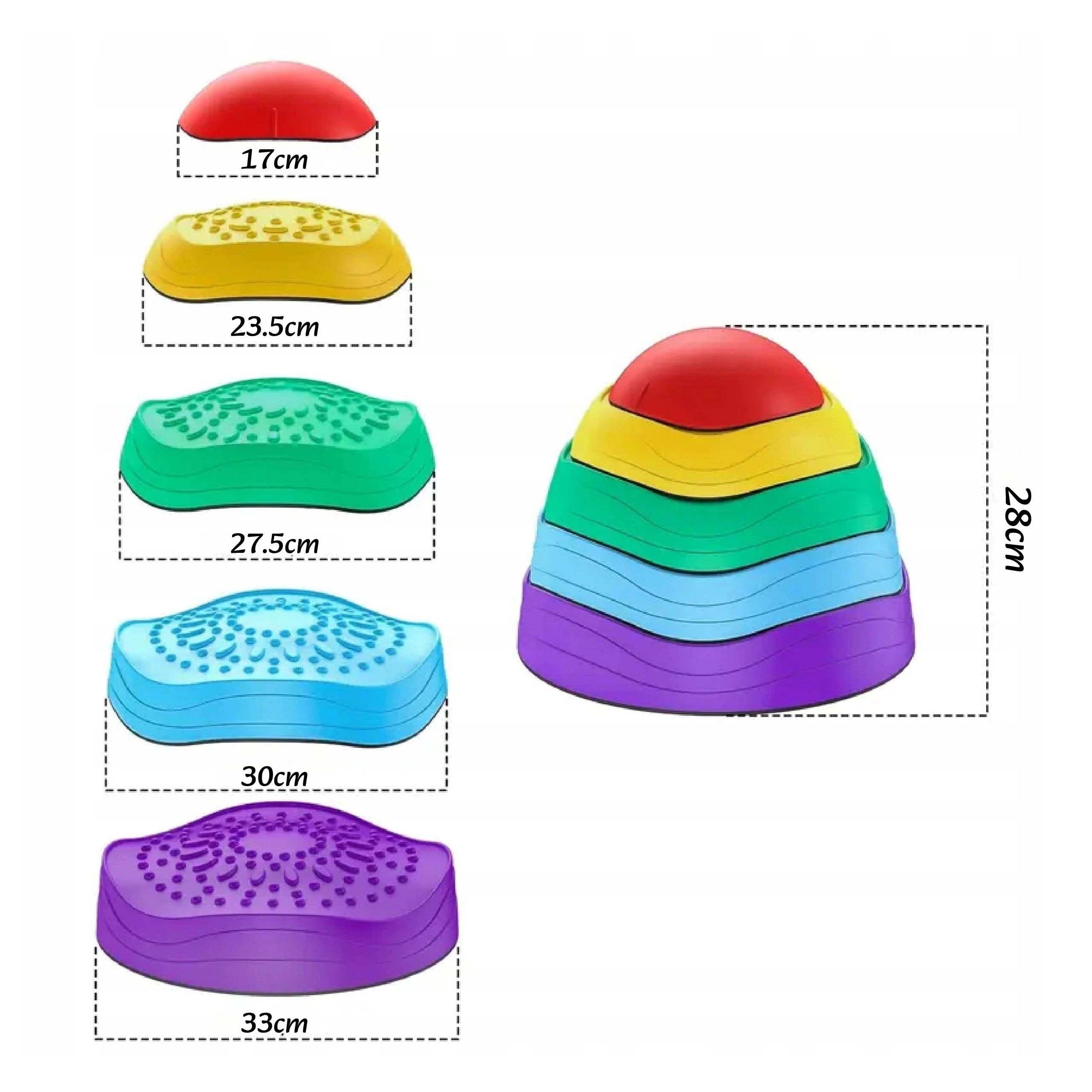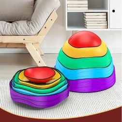 Kolorowe kamienie równoważne dla dzieci od 3 lat rozwijają równowagę, koordynację i dużą motorykę. Dzięki antypoślizgowej podstawie, różnym fakturom i rozmiarom idealnie nadają się do tworzenia torów przeszkód, gier i kreatywnego ruchu. Możliwość sztaplowania ułatwia przechowywanie, a żywe kolory motywują do aktywnej zabawy.