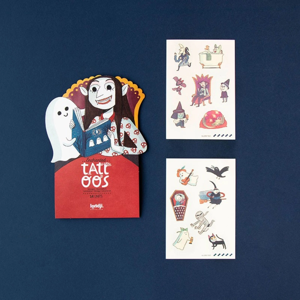 Tematyczny zestaw tymczasowych tatuaży LONDJI przenosi w upiornie magiczny świat pełen zamków, postaci i fantazji. Dzięki prostej aplikacji na wodę dzieci szybko zmienią się nie do poznania, a rodzice docenią bezpieczny skład i łatwe usuwanie.