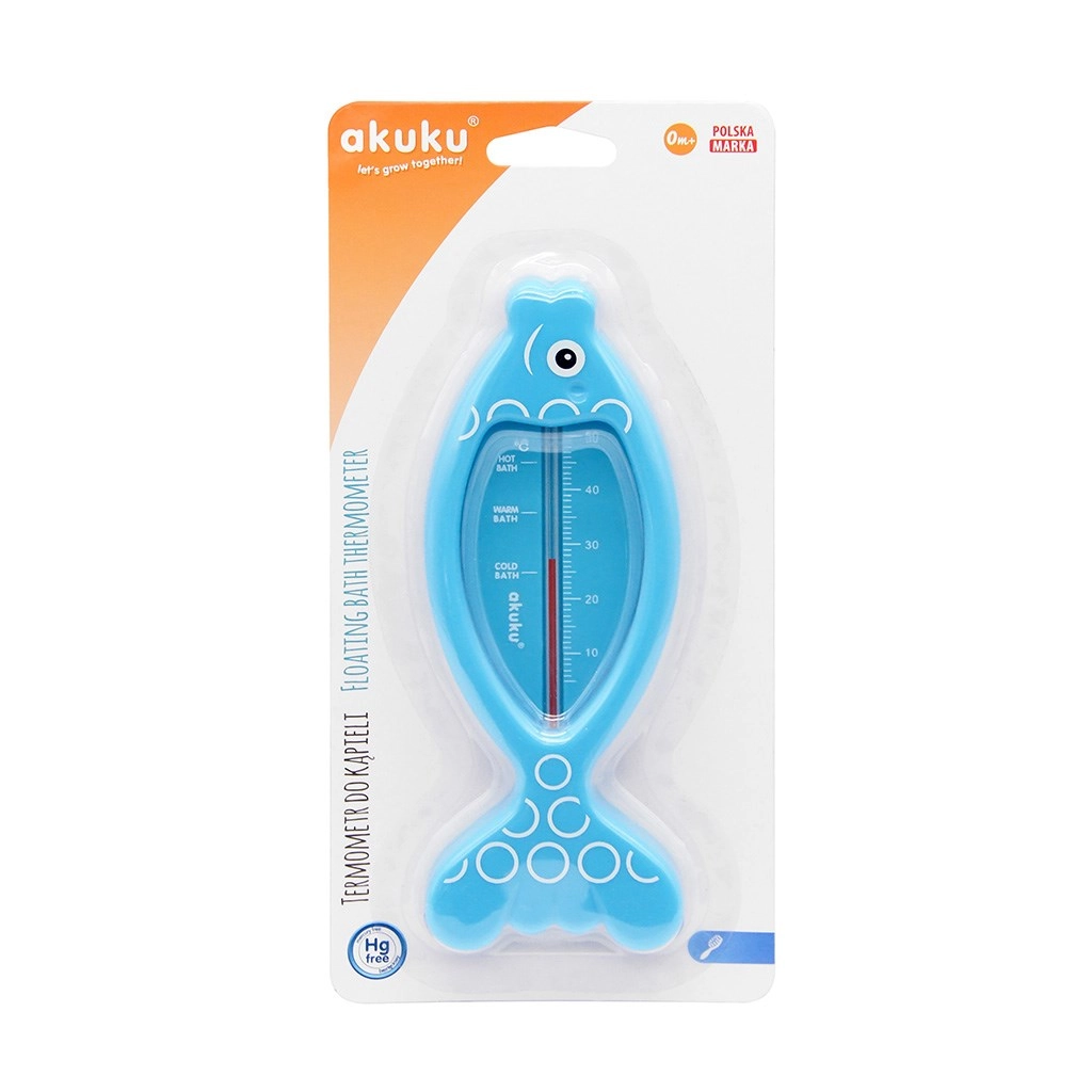 Praktyczny pływający termometr do wanienki marki Akuku w kształcie rybki dokładnie zmierzy temperaturę wody dla bezpiecznej kąpieli maluszka. Nie zawiera rtęci, a dzięki czytelnej skali łatwo sprawdzisz idealną temperaturę. Pływająca konstrukcja zapewnia wygodne użycie, a bezpieczny materiał jest odpowiedni dla dzieci.
