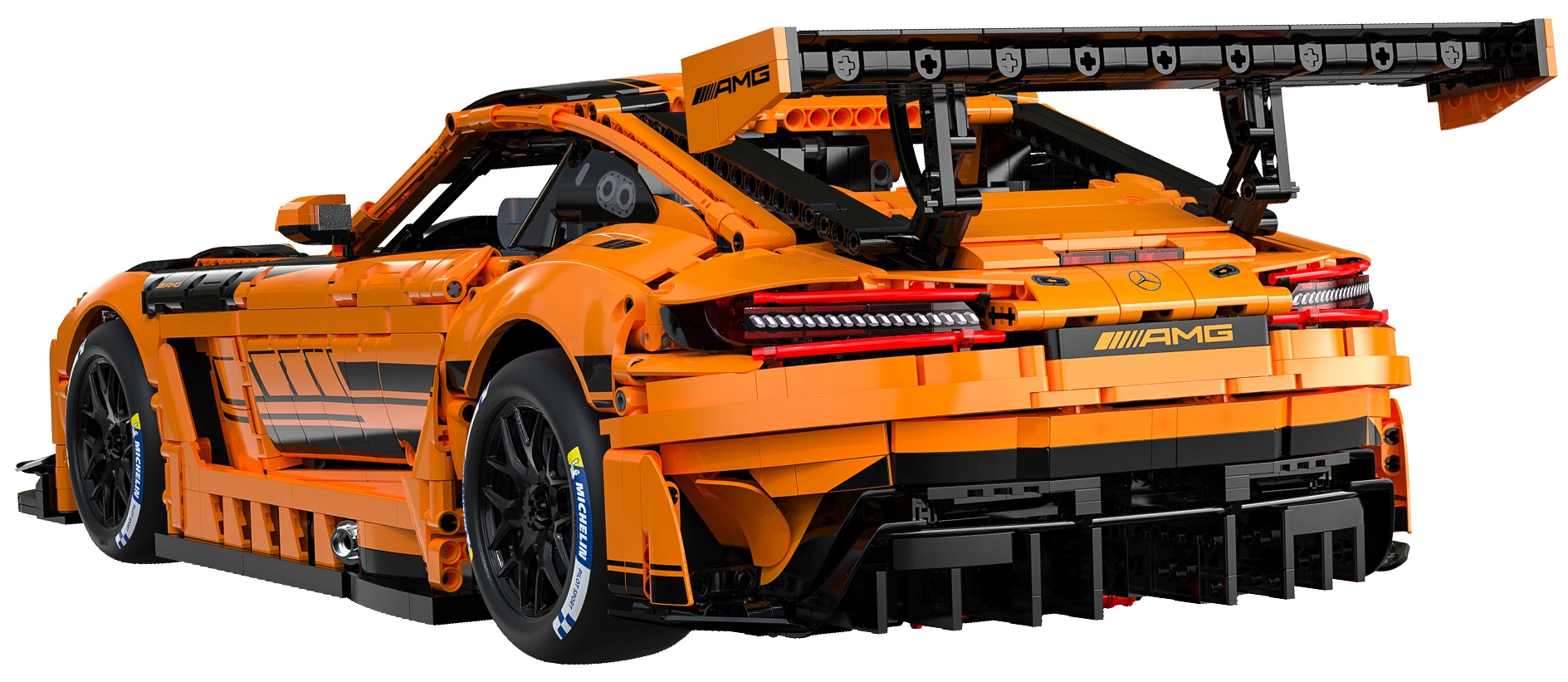 Wiele modułów LED podkreśla wyścigowy wygląd licencjonowanego MERCEDES-AMG GT3 z precyzyjnymi nadrukami i realistycznymi elementami aerodynamicznymi.