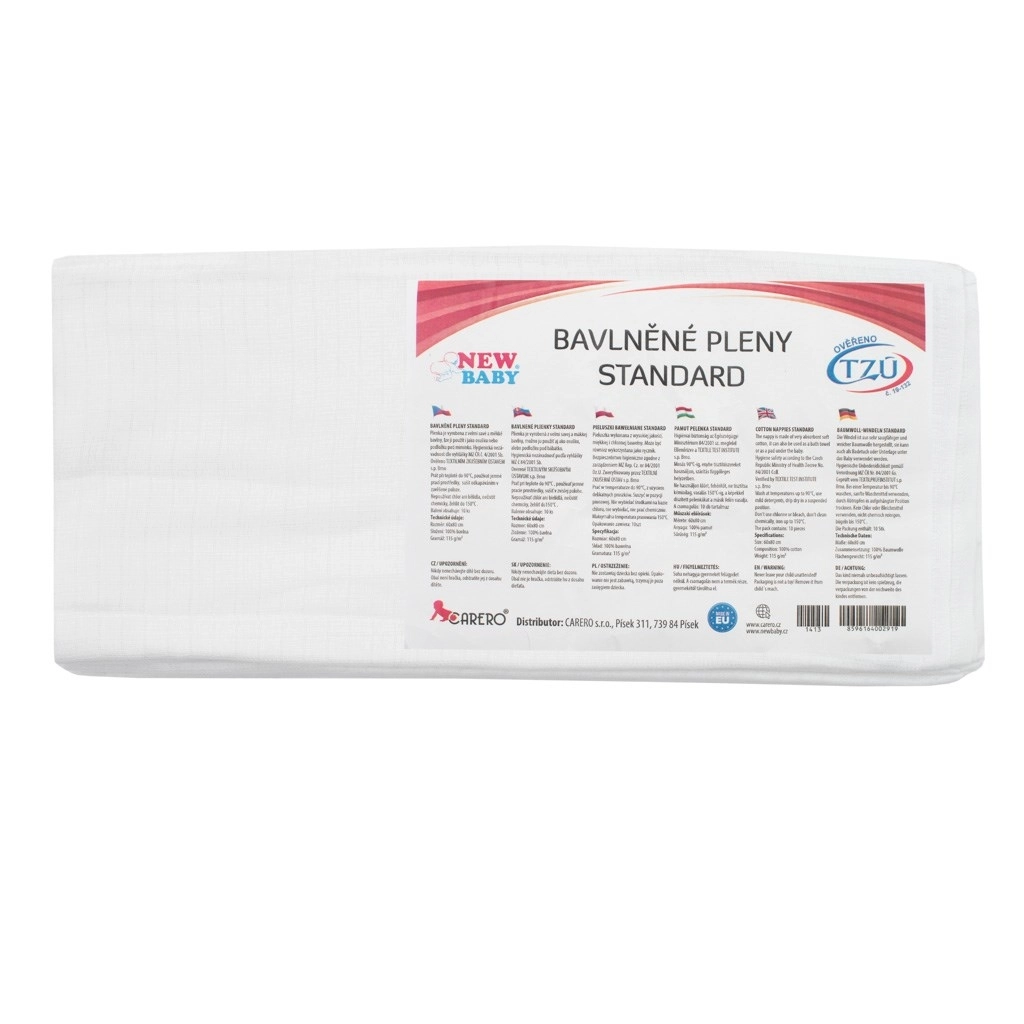 Bawełniane pieluchy NEW BABY o standardowej jakości to niezawodny wybór do każdej wyprawki. Delikatny i przewiewny materiał ze 100% bawełny jest łagodny dla wrażliwej skóry dziecka, dobrze chłonie i szybko schnie. Dzięki uniwersalnym wymiarom 60 × 80 cm sprawdzą się nie tylko jako klasyczna pielucha, ale także jako podkład, ściereczka czy lekka przykrywka.