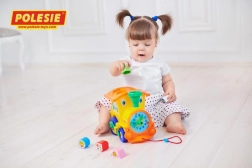 Ta urocza lokomotywa to idealna zabawka dla maluchów. Łączy lubiany wózek do ciągnięcia z edukacyjną układanką oraz prostym zegarem, dzięki czemu dziecko bawi się i jednocześnie uczy. Dzięki sześciu różnym kształtom ćwiczy małą motorykę i logiczne myślenie.