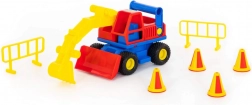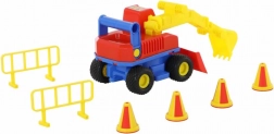 Odkryj solidną dziecięcą koparkę ConsTruck od marki WADER – kolorowy pojazd budowlany z gumowymi oponami, w pełni ruchomymi elementami oraz możliwością mechanicznego sterowania. W zestawie znajdują się 4 pachołki i 2 bariery drogowe dla realistycznej zabawy w budowę już od 1. roku życia.