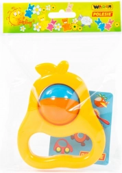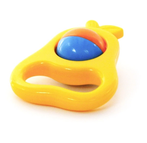 Kolorowa dziecięca grzechotka w kształcie gruszki z wysokiej jakości, atestowanego materiału dla najmłodszych. Dzięki ergonomicznemu uchwytowi łatwo się trzyma i po potrząśnięciu wydaje przyjemny dźwięk wspierający rozwój zmysłów i małej motoryki. Lekka i bezpieczna konstrukcja, kolor zgodnie z aktualną ofertą.