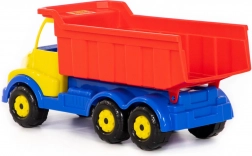 Ta kolorowa plastikowa wywrotka ucieszy wszystkie dzieci, które kochają place budowy i przewożenie „ładunku”. Dzięki stabilnej konstrukcji i gładko toczącym się kółkom nadaje się do zabawy w pomieszczeniach i na świeżym powietrzu. Funkcjonalna podnoszona skrzynia umożliwia łatwe załadunek i wysypywanie piasku lub klocków.