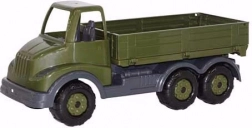 Solidny samochód budowlany typu wywrotka w wojskowym stylu marki Wader ucieszy małych budowniczych w domu i na zewnątrz. Oferuje duże wymiary 41 × 16 × 18 cm, jest bez napędu dla bezpiecznej zabawy i certyfikowany od 1 roku życia. Dostarczany w praktycznej siatce.